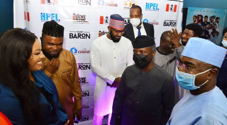 Vice President Yemi Osinbajo and Buba Marwa, Chairman, National Drug Law Enforcement Agency (NDLEA), on Friday in Abuja attended the premiere of the movie, “The Silent Baron’.